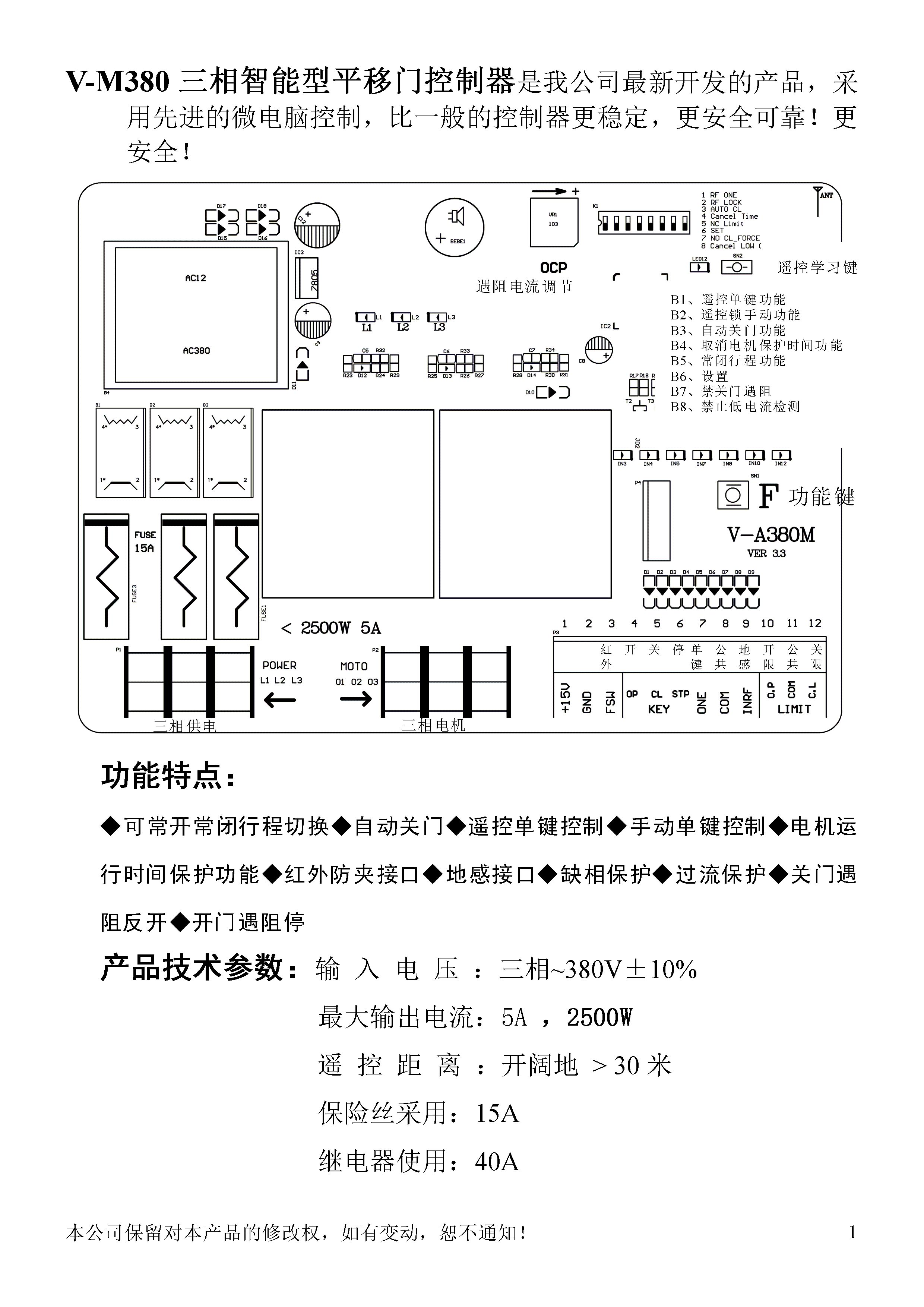 2.5KW内380V三相平移门控制器