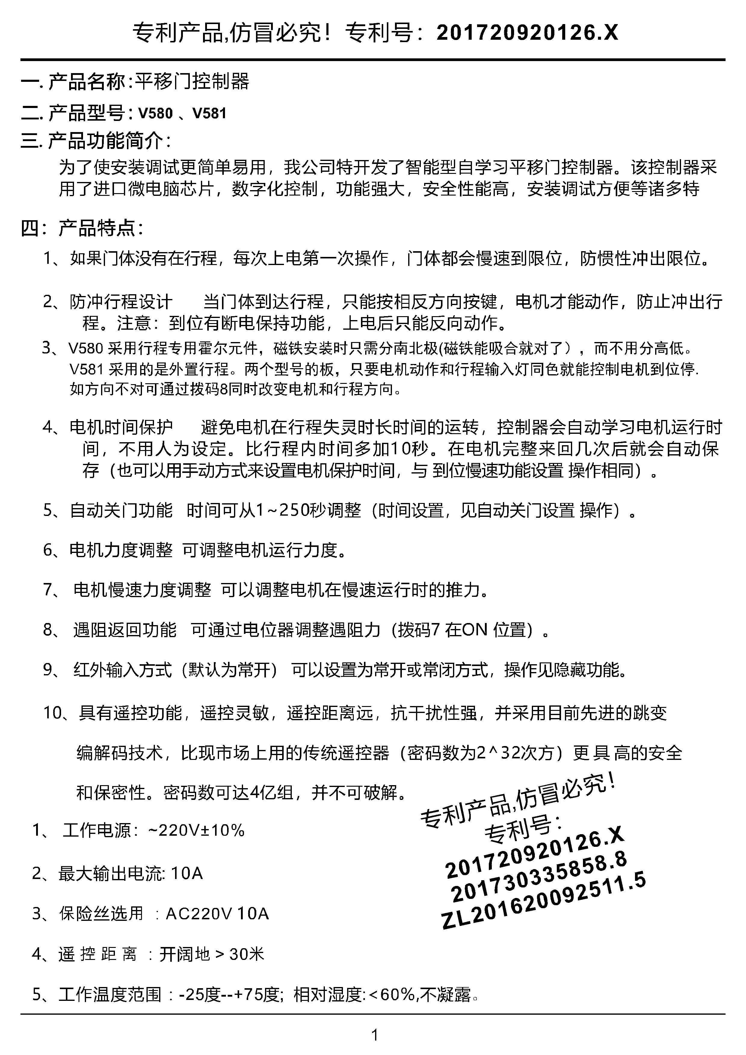 V580v813带测速功能平移门控制器带冷却风扇端口