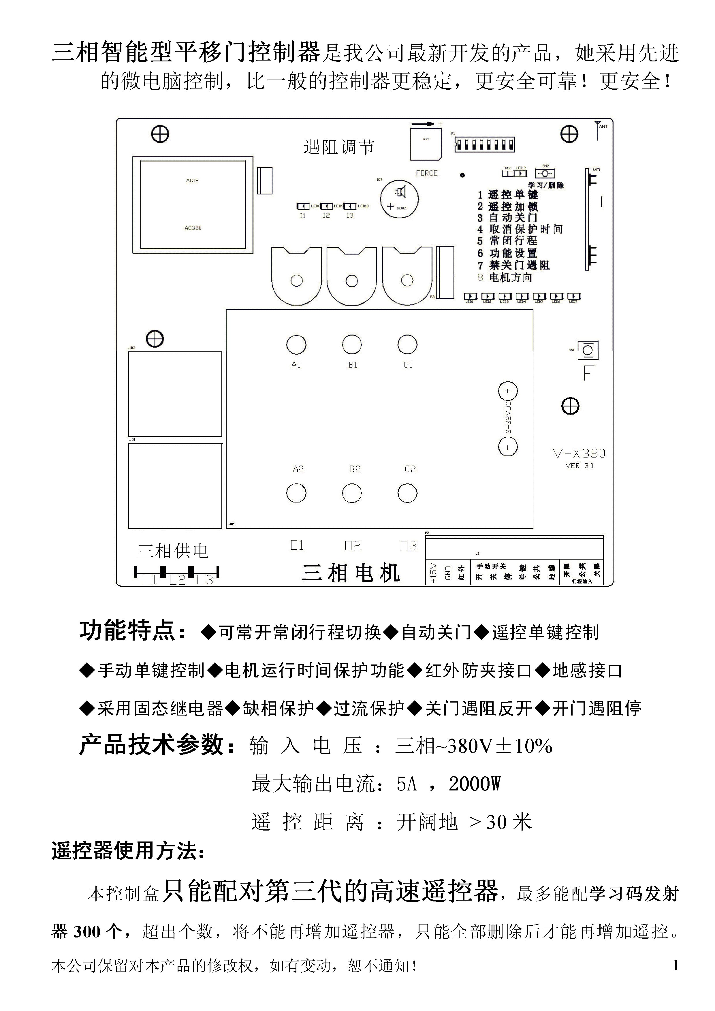X380三相平移门控制器